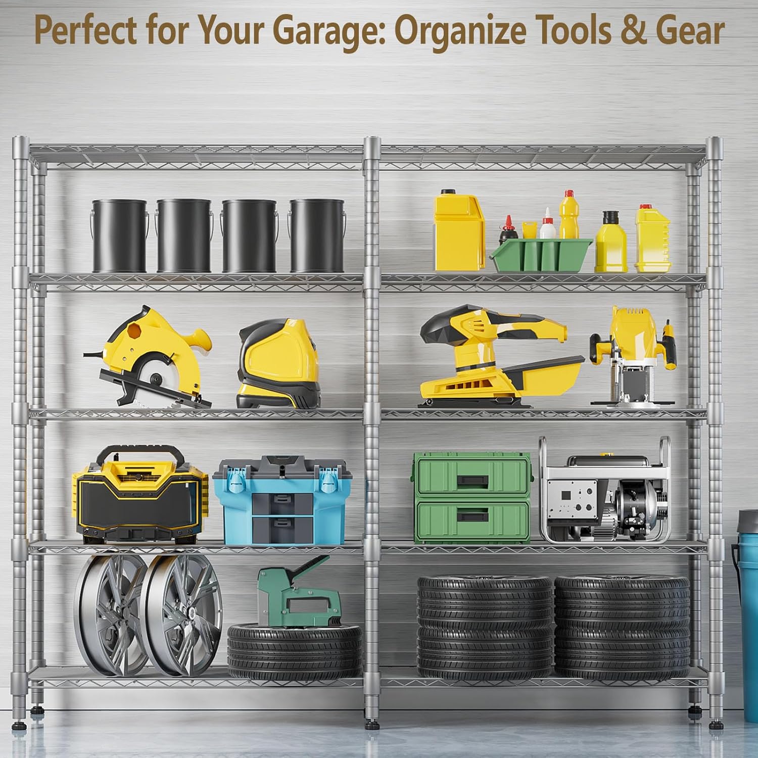 Himimi 72"W Wire Rack Shelving-2000LBS Capacity, Adjustable Storage Shelves Metal Shelves for Storage, 5-Tier Heavy Duty Wire Organizer for Kitchen, Garage, Pantry, 72" W x 18" D x 72" H, Silver Grey