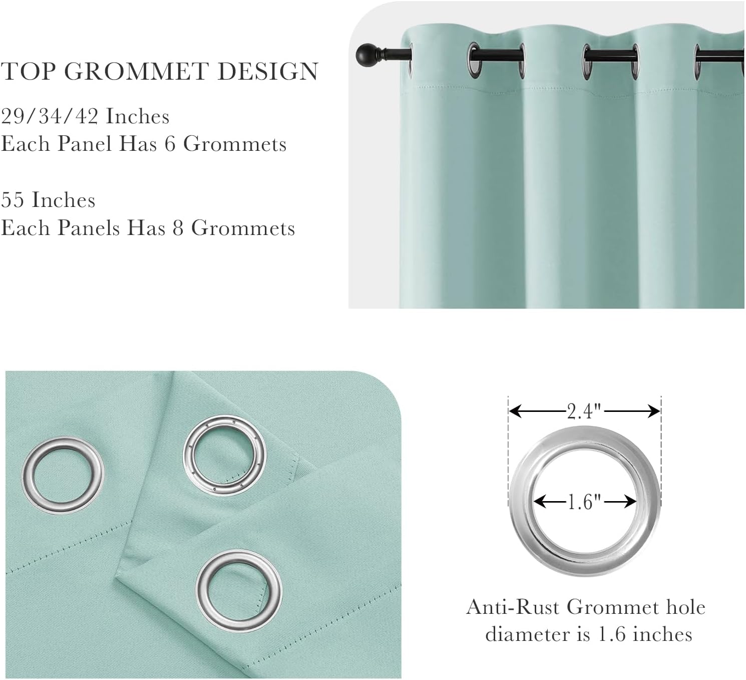 - PACKAGE CONTENT: A package includes 2 blackout curtain valances measuring 42" wide by 36" long. 6 silver grommets (1.6" inner diameter) top of the blackout panel fit most standard curtain rods