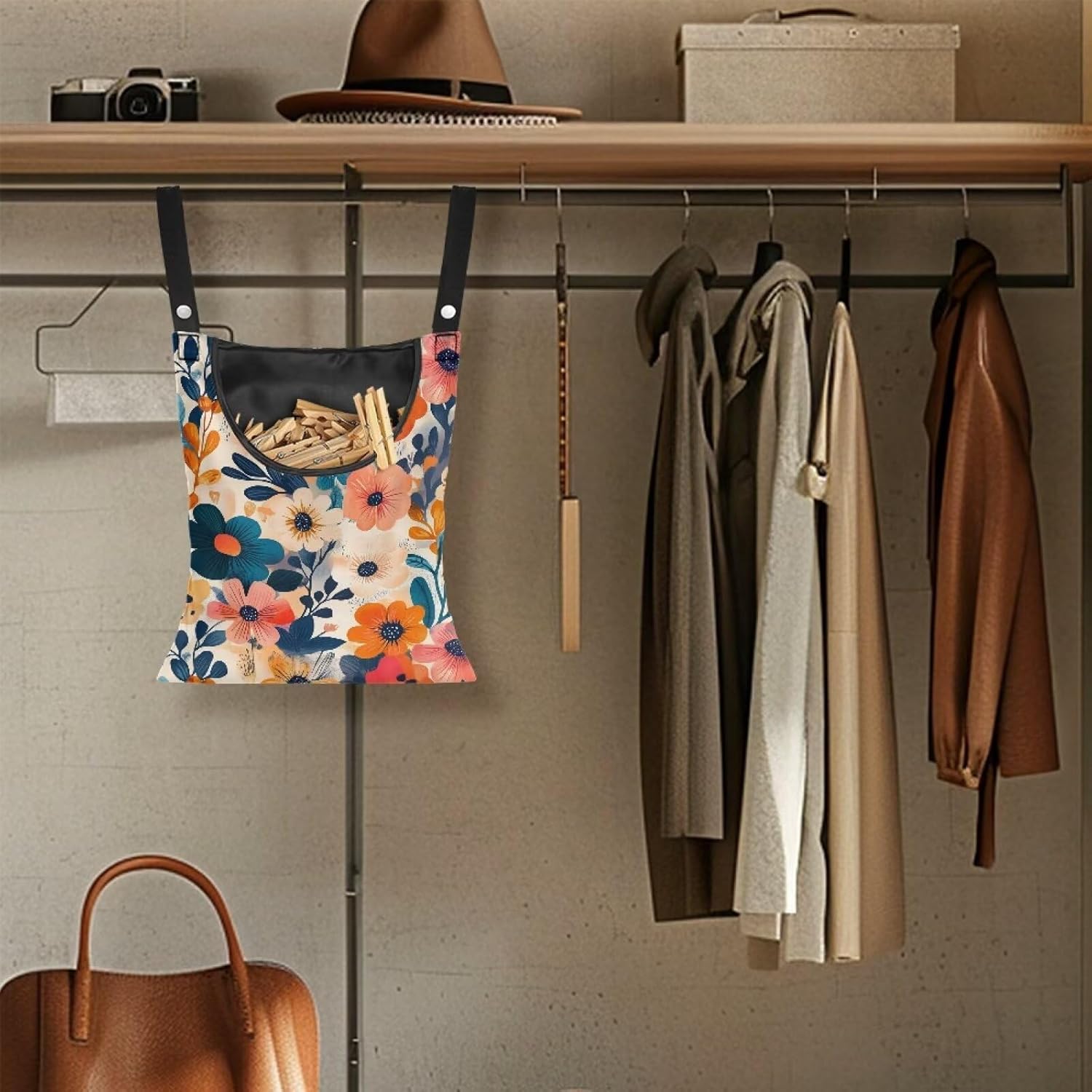 Colorful Gorgeous Flowers Rotatable Clothespin Storage Bag - Large Opening Waterproof Organizer for Laundry Room, Garden and Clothesline Hanging
