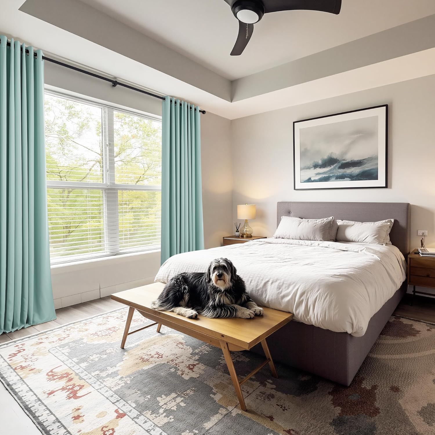 PONY DANCE Aqua Blackout Curtains 80 inch Long 2 Panels Set, Thermal Insulated Solid Grommet Closet Curtains for Bedroom Closet Door, Temporary Doorway Cover Room Divider Drapes, W 55" x L 80"