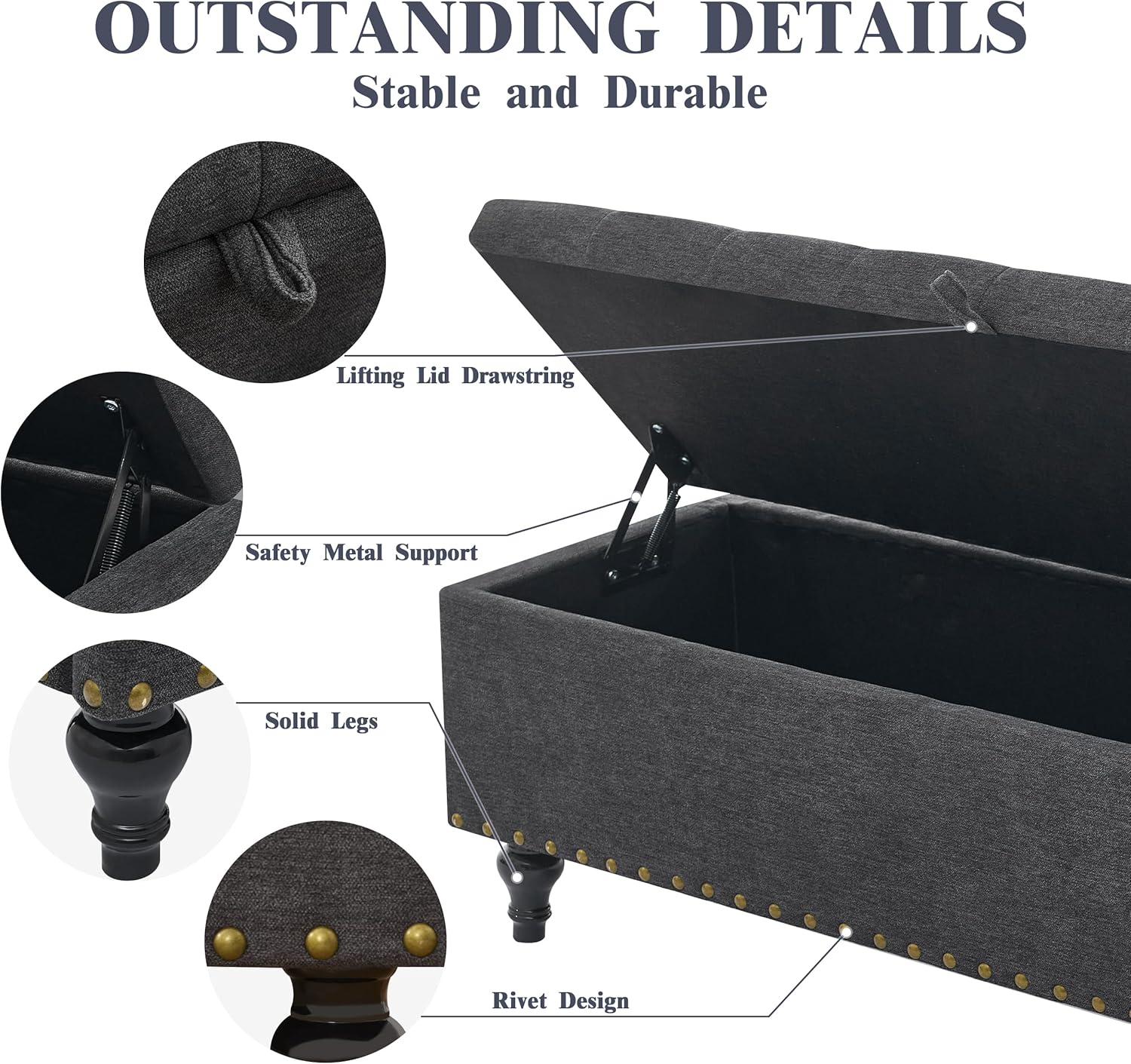 50" Storage Ottoman Bench, Tufted Ottoman with Storage for Living Room, Large End of Bed Ottomans, Modern Entryway Benchs, Window & Bedroom Benches for Foot of Bed (Dimgray)