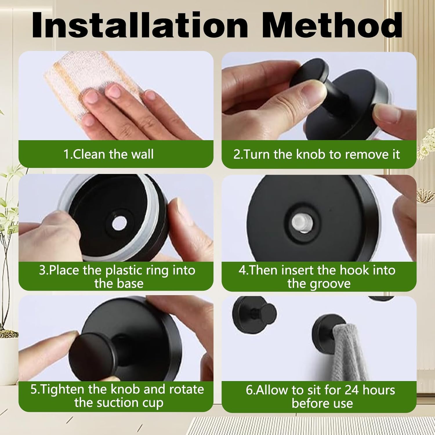 - 【Instant Installation No-Drill 】Enjoy hassle-free setup with our no-drill suction cup hooks. Simply press the suction cup onto any smooth surface, like glass or tile, twist the hook, and you're ready to hang your favorite wreaths or garlands.