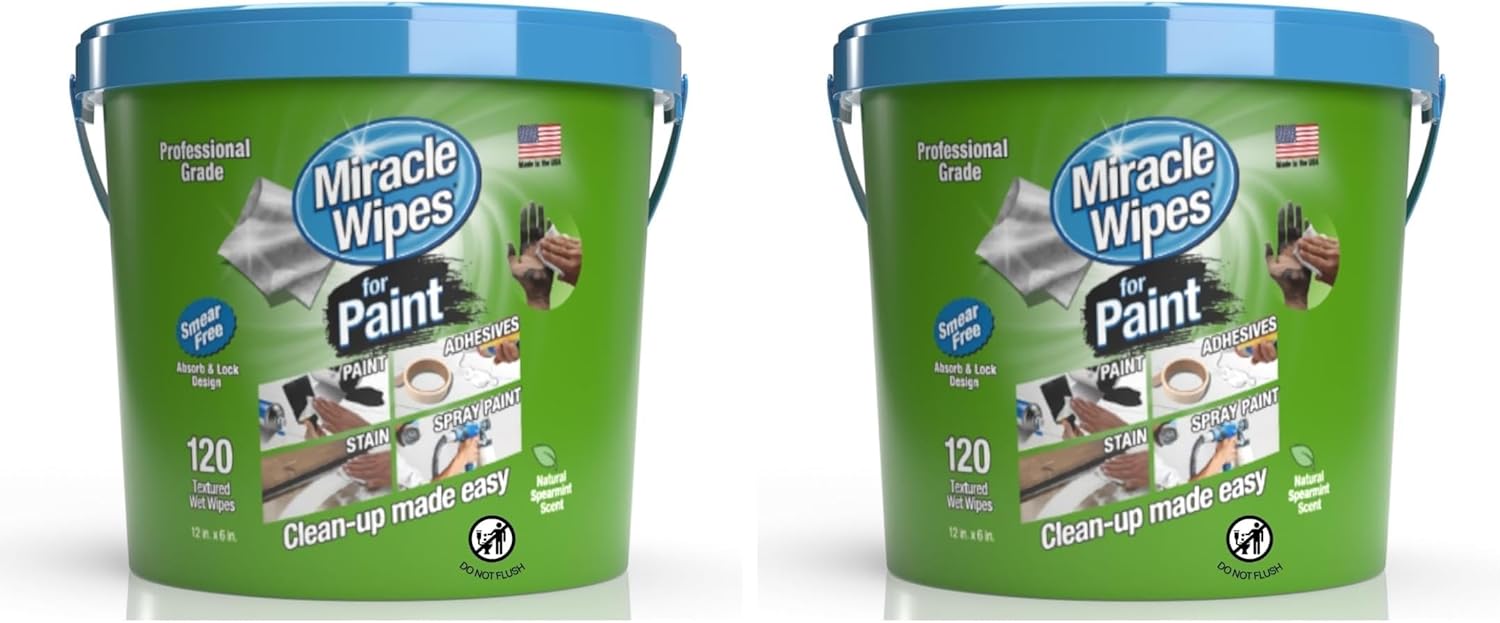 MiracleWipes for Paint Prep & Cleanup, Remove Tough Grime Build-Up, Wet Paint, Caulking, Epoxy, Colorant, and more from Hands, Surfaces, & Tools - 120 Count (Pack of 2)