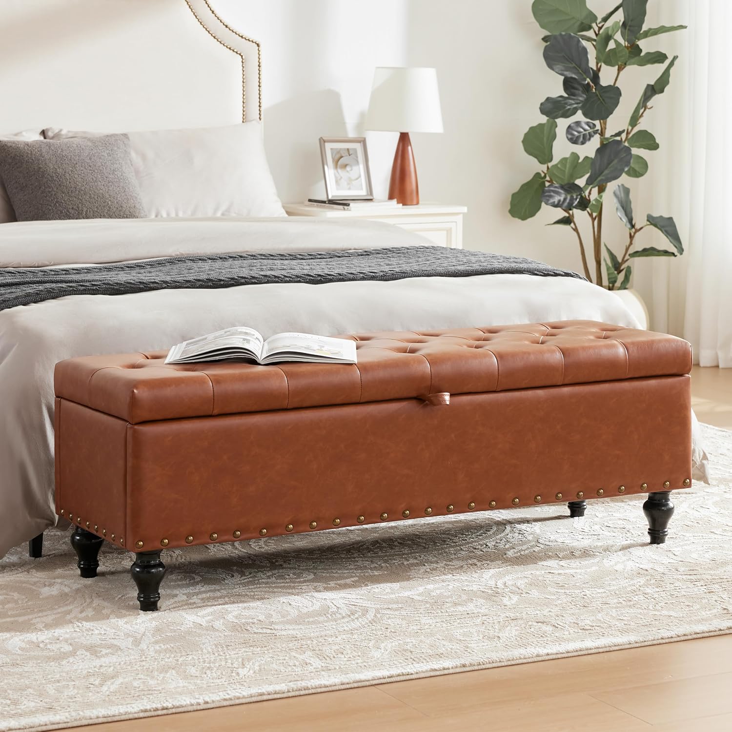 50" Storage Ottoman Bench, Tufted Ottoman with Storage for Living Room, Large End of Bed Ottomans, Modern Entryway Benchs, Window & Bedroom Benches for Foot of Bed (Brown)