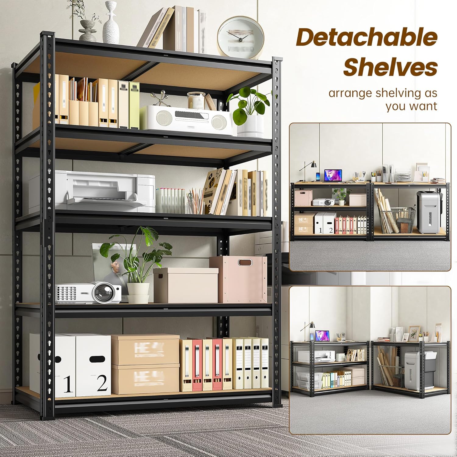 5-Tier Storage Shelves, 1980LBS Adjustable Pantry Shelves, Metal Shelving Unit for Kitchen, Pantry, Closet, Laundry, Garage, 72.06" H x 35.55" W x 15.76" D