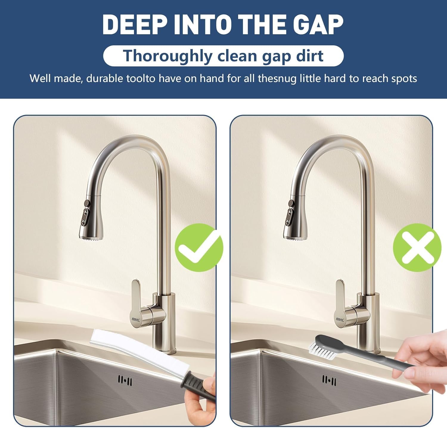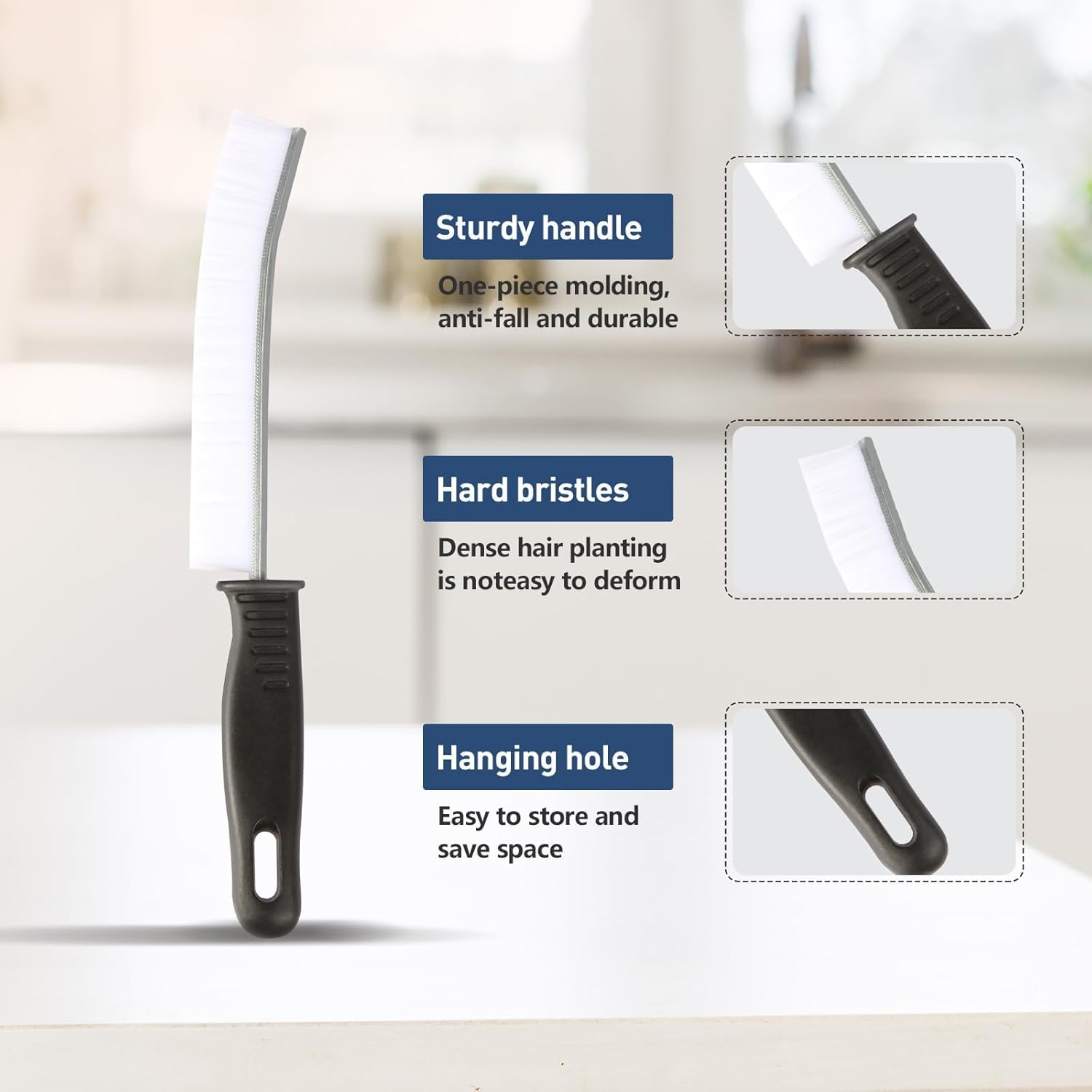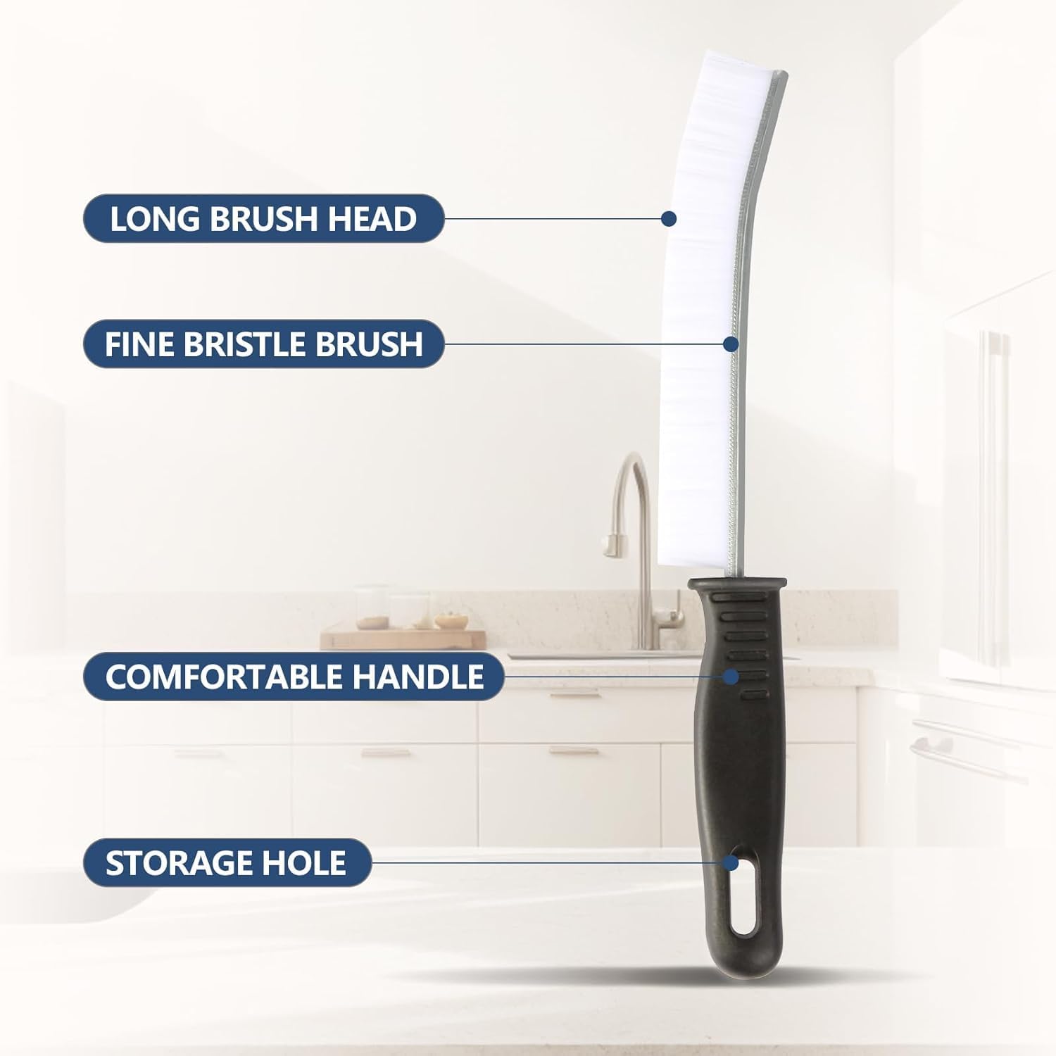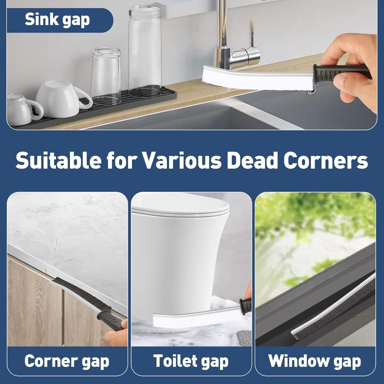 - The brush top is designed as a small arc for easy penetration into crevices, allowing you to tackle gaps around window tracks, sliding door tracks, shower door tracks, toilet lid gaps, and gaps around kitchen sinks and bathroom basins.